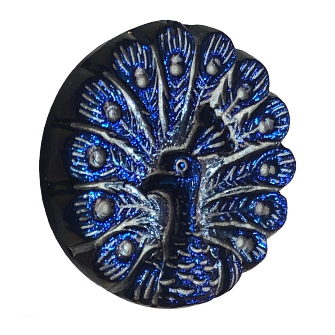 【チェコ ガラスボタン】くじゃく(シャイニングブルー)8号