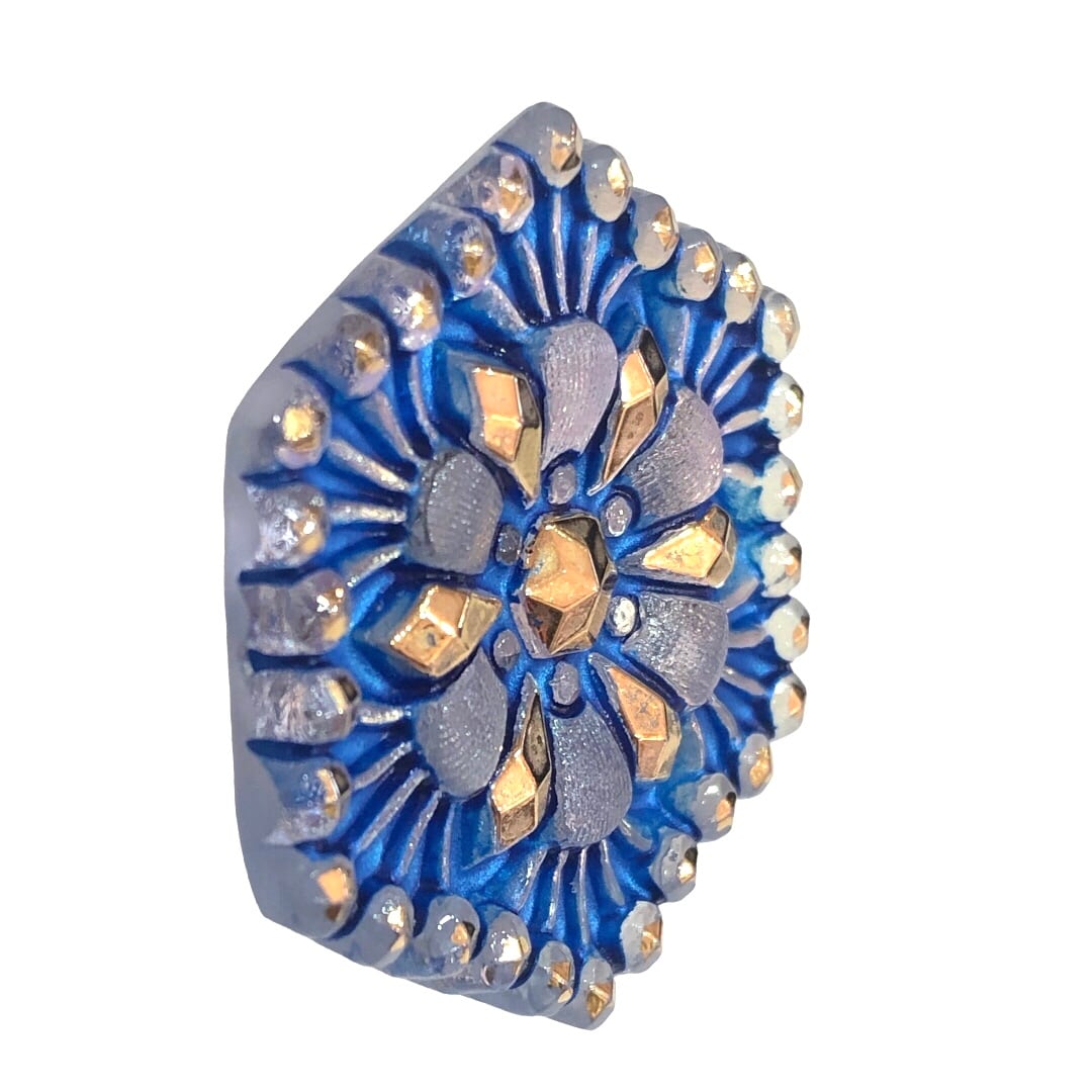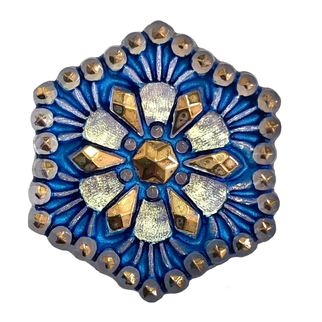【チェコ ガラスボタン】ヘクサゴン(ライトブルー ゴールド)