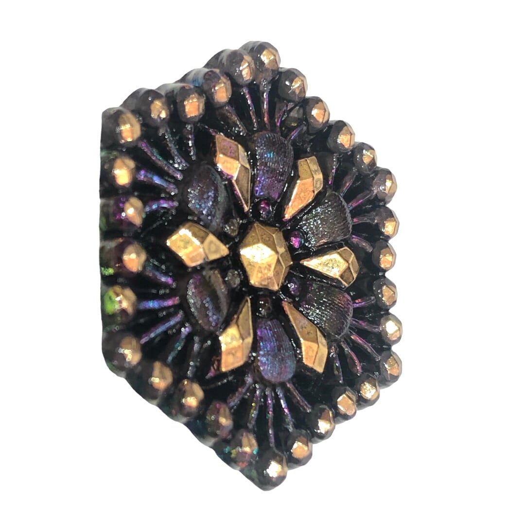【チェコ ガラスボタン】ヘクサゴン(ディープグリーン ゴールド)