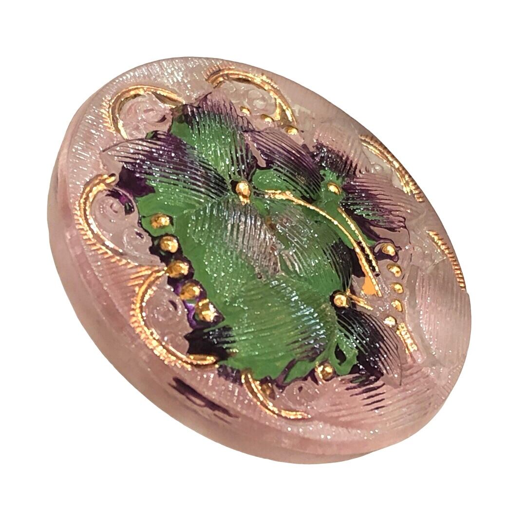 【チェコ ガラスボタン】アマリリス(グリーン パープル ゴールド)12号