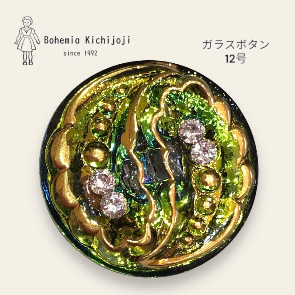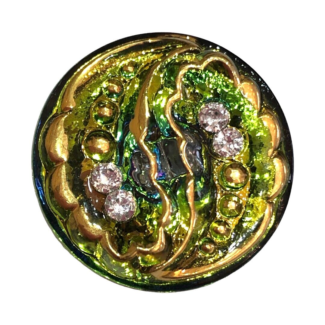 【チェコ ガラスボタン】ブリリアンス(ライトグリーン ゴールド)12号