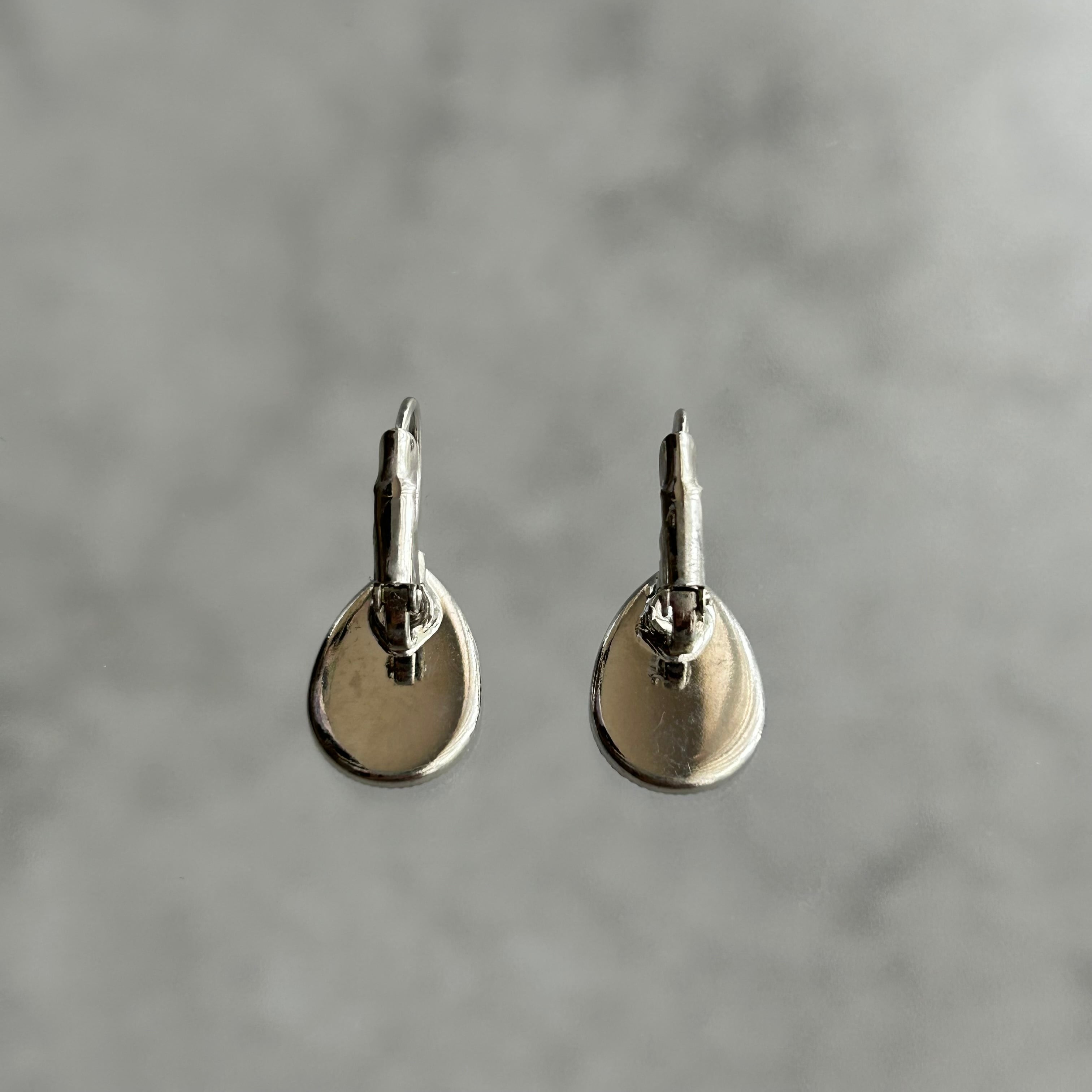 スワロフスキーのガラスパーツを使ったピアスです。繊細なカットが施されているため、耳元で美しく光ります。金具はロジウムコーティングがされています。