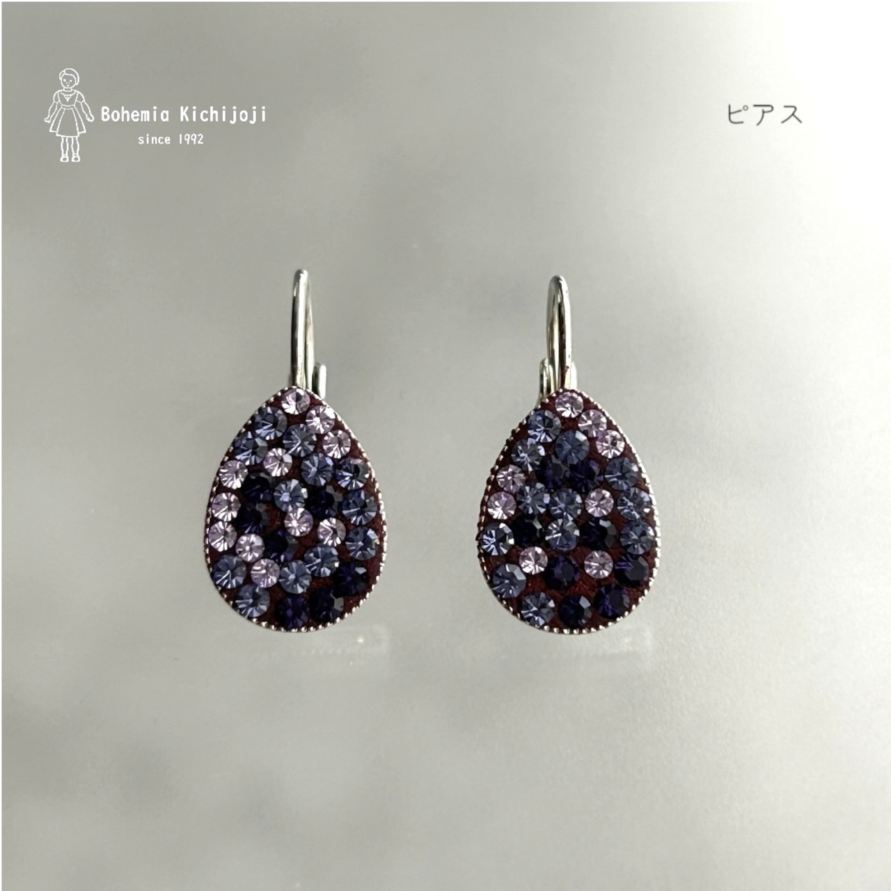 【スワロフスキーガラス】ピアス(パープルグラデーションドロップ)