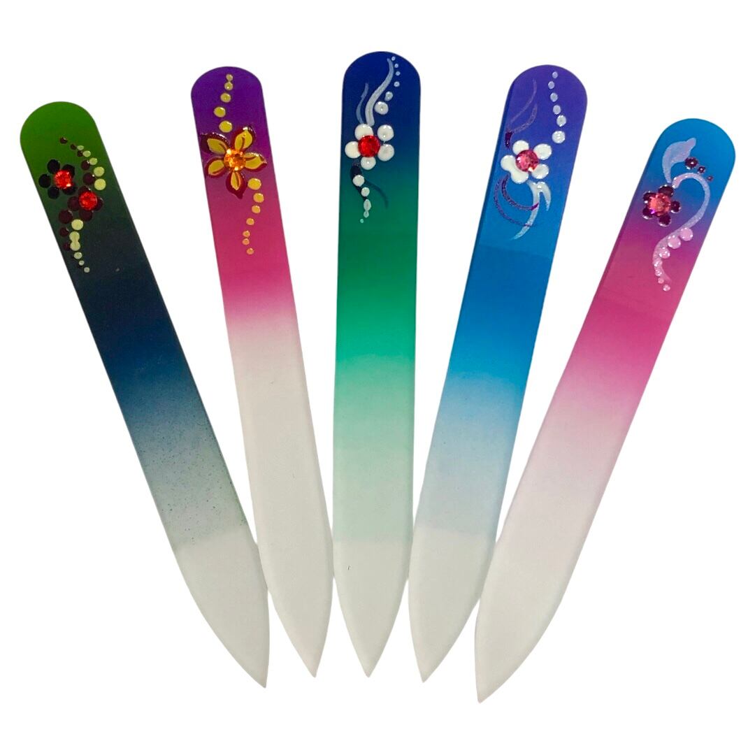 【チェコ製】手描きガラス製爪やすり(カラフルフラワー⑤)