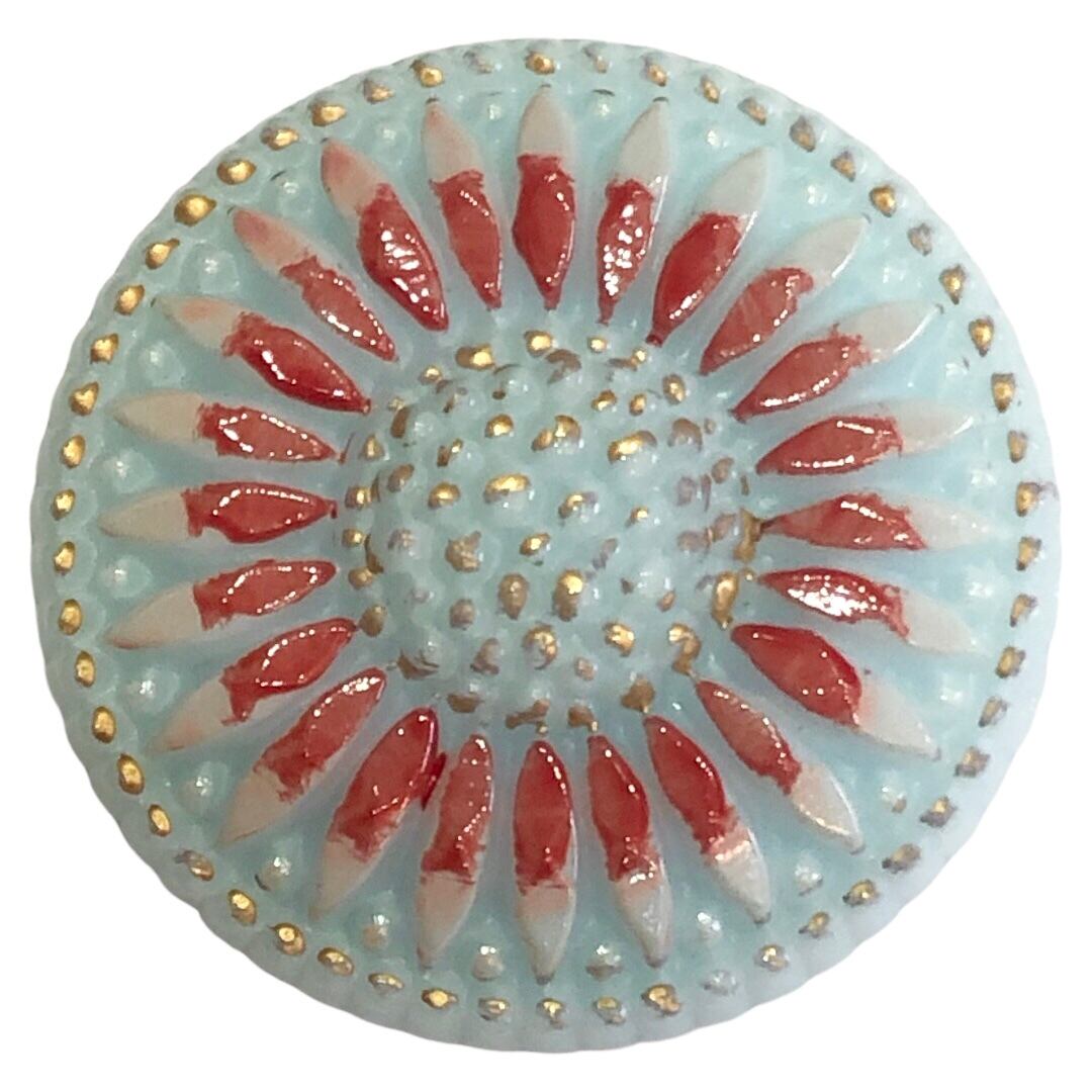 【チェコ ガラスボタン】ひまわり(ブルー レッド ゴールド)14号