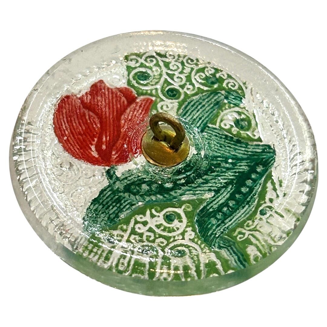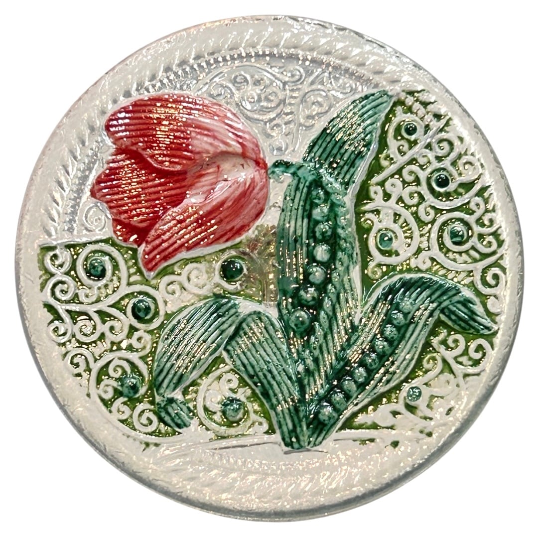 【チェコ ガラスボタン】チューリップ(レッド グリーン)14号